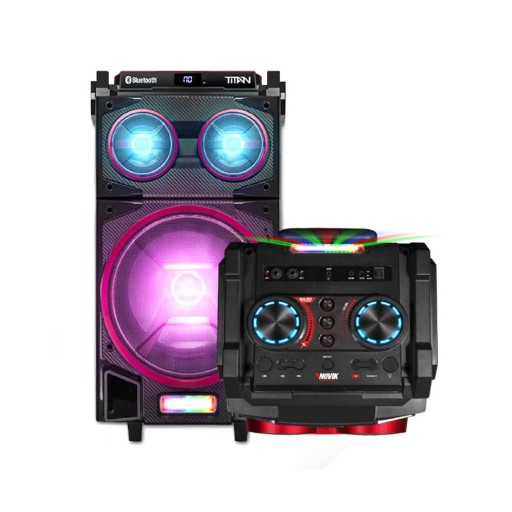 NOVIK TITAN BT Sin USB Sistema Portatil De Sonido / Bateria / 10" +2x3"/ 600W RMS / X-BASS System / Efectos LED / BLUETOOTH / Entrada De Microfono / Doble Sistema De Iluminacion / Microfono Incluido
