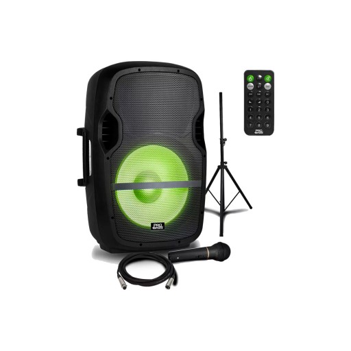 PRO BASS ELEVATE LP Caja Acustica Amplificada 15" / Soporte + Mic/ Bluetooth/FM/USB / 2000W / Luces Audioritmicas