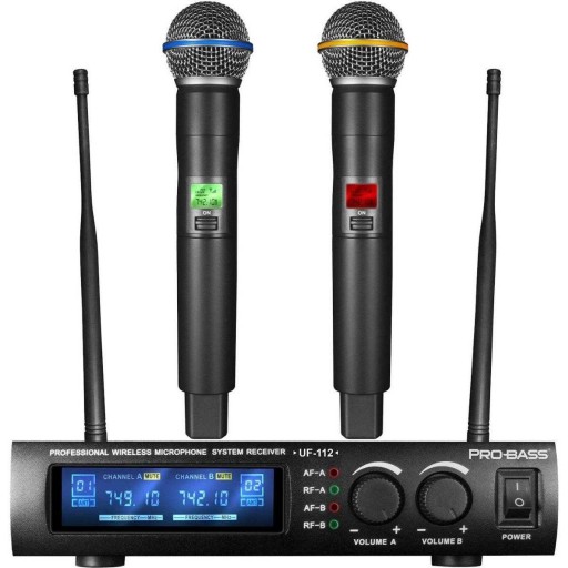 PRO BASS UF-112 Microfono Inalambrico UHF / 2CH / Valija / Indicador De Bateria / Salidas Balanceadas