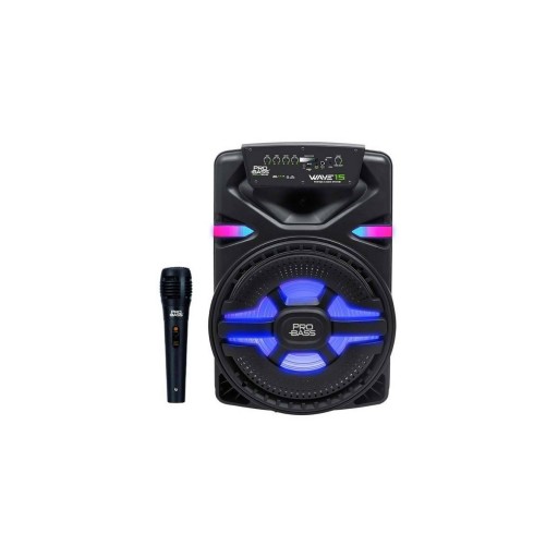 PRO BASS WAVE 15 Caja Acustica Amplificada 15" / Bluetooth/FM / Bateria / MIC +Cable